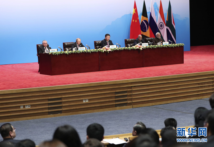 9月4日,國(guó)家主席習(xí)近平在廈門(mén)出席金磚國(guó)家領(lǐng)導(dǎo)人同工商理事會(huì)對(duì)話會(huì)并發(fā)表講話,巴西總統(tǒng)特梅爾、俄羅斯總統(tǒng)普京、印度總理莫迪、南非總統(tǒng)祖馬共同出席。新華社記者 丁林 攝2ga安康新聞網(wǎng)