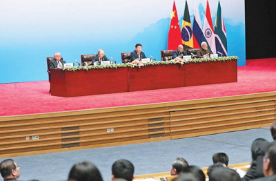 一是促進金磚國家互利共贏。要發(fā)揮各自優(yōu)勢,帶領(lǐng)工商界和金融界,將領(lǐng)導(dǎo)人共識轉(zhuǎn)化為具體行動,落實《金磚國家經(jīng)濟伙伴戰(zhàn)略》,拉緊利益紐帶,實現(xiàn)共同發(fā)展。