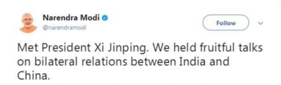 “見了習(xí)近平主席。我們就印中雙邊關(guān)系舉行了富有成果的會(huì)談。”