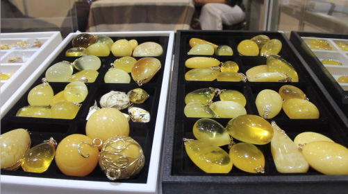 第18屆國(guó)際琥珀展上的琥珀展品。人民網(wǎng)記者 暨佩娟攝