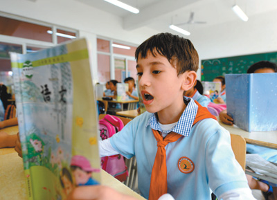 圖為9月13日,在安徽省合肥市蚌埠路第二小學(xué),德國(guó)籍小學(xué)生正在用普通話朗讀課文。VuX安康新聞網(wǎng)