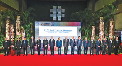 | 11月14日,國務(wù)院總理李克強(qiáng)在菲律賓國際會議中心出席第十二屆東亞峰會。這是會議前,李克強(qiáng)同出席會議的東盟十國領(lǐng)導(dǎo)人以及韓國總統(tǒng)文在寅、俄羅斯總理梅德韋杰夫、日本首相安倍晉三、印度總理莫迪、澳大利亞總理特恩布爾、新西蘭總理阿德恩、美國國務(wù)卿蒂勒森合影。 |