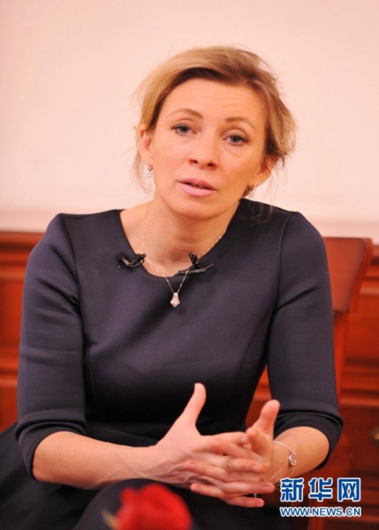 俄羅斯外交部新聞司司長(zhǎng)、新聞發(fā)言人扎哈羅娃接受采訪。新華網(wǎng)發(fā) 徐昕攝