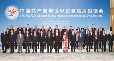 2017年11月30日,中國共產(chǎn)黨與世界政黨高層對(duì)話會(huì)在北京召開。12月1日,習(xí)近平總書記在會(huì)上發(fā)表講話時(shí)這樣說:中國共產(chǎn)黨愿廣交天下朋友。長期以來,中國共產(chǎn)黨同世界上160多個(gè)國家和地區(qū)的400多個(gè)政黨和政治組織保持著經(jīng)常性聯(lián)系,“朋友圈”不斷擴(kuò)大。面向未來,中國共產(chǎn)黨愿同世界各國政黨加強(qiáng)往來,分享治黨治國經(jīng)驗(yàn),開展文明交流對(duì)話,增進(jìn)彼此戰(zhàn)略信任,同世界各國人民一道,推動(dòng)構(gòu)建人類命運(yùn)共同體,攜手建設(shè)更加美好的世界!