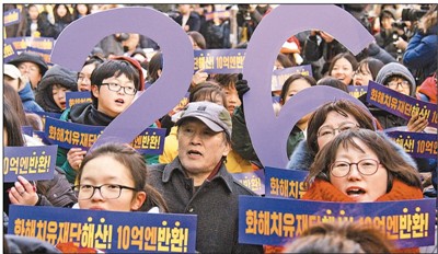 韓國(guó)政府關(guān)于韓日“慰安婦”協(xié)議的后續(xù)措施一經(jīng)公布,立即引發(fā)“慰安婦”受害者和一些民間團(tuán)體的不滿。他們認(rèn)為既然承認(rèn)韓日“慰安婦”協(xié)議是錯(cuò)誤的,就應(yīng)廢棄并使之無(wú)效,不予以更正是對(duì)受害者的欺瞞行為。參加10日“周三示威”的“慰安婦”受害者李玉善憤怒地表示,“當(dāng)事人都不知情的協(xié)議是無(wú)效的,應(yīng)重新談判!