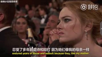 奧普拉將“這樣的日子已經(jīng)到頭了!”(their time is up)這句有力的話重復(fù)了三遍,眾明星起立鼓掌,全場(chǎng)被點(diǎn)燃了!