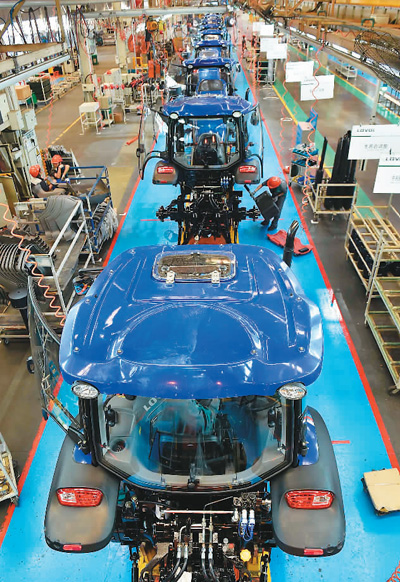 | 圖為位于山東濰坊的雷沃重工阿波斯拖拉機總裝車間的生產(chǎn)線。黨的十九大召開,明確以供給側(cè)結(jié)構(gòu)性改革為主線,推動經(jīng)濟發(fā)展質(zhì)量變革、效率變革、動力變革,提高全要素生產(chǎn)率。 |