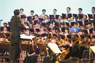 20日,云南省富民縣舉行小水井苗族農(nóng)民合唱團(tuán)赴英美巡演歸來的匯報(bào)演出。合唱團(tuán)與昆明聶耳交響樂團(tuán)共同演出了《小河淌水》《彩云追月》《我和我的祖國》《拉德斯基進(jìn)行曲》等中外經(jīng)典曲目。