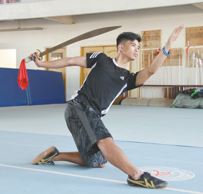 | 準備參加東南亞運動會的菲律賓國家武術隊隊員在進行訓練。本報記者 孫廣勇攝 |
