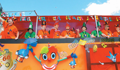 圖為人們參加狂歡節(jié)花車游行。68N安康新聞網