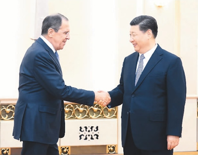 國(guó)家主席習(xí)近平23日在人民大會(huì)堂會(huì)見俄羅斯外長(zhǎng)拉夫羅夫。
