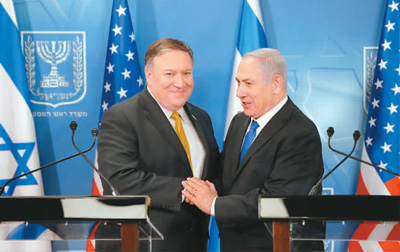 | 圖為4月29日,在以色列特拉維夫,以色列總理內(nèi)塔尼亞胡(右)與美國(guó)新任國(guó)務(wù)卿蓬佩奧出席聯(lián)合新聞發(fā)布會(huì)。新華社/美聯(lián) |