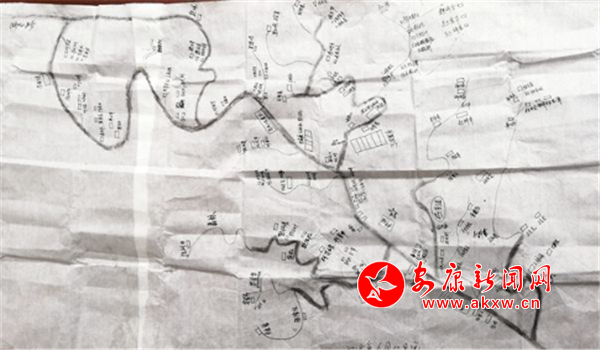 在一張大白紙上,左士霆用鉛筆勾勒出安樂(lè)村的主要地形和道路。夜深人靜時(shí),他又一戶戶標(biāo)記出當(dāng)天走訪的貧困戶住址。駐村以來(lái),他走遍了安樂(lè)村的溝溝壑壑,將村里主要路線、地勢(shì)地形、貧困戶的居住點(diǎn)勾勒連接成片,繪制成“地圖”,整個(gè)村情一目了然。