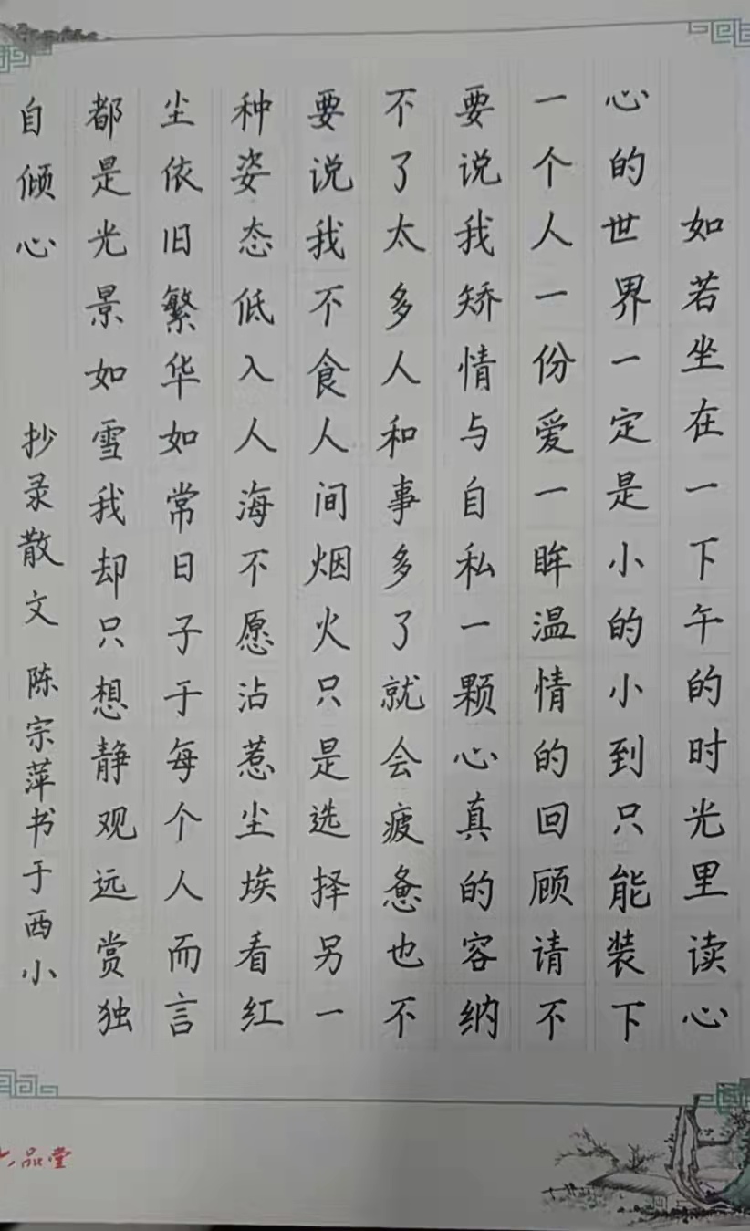 本次教師基本功大賽比賽內(nèi)容為“三筆一畫”,即硬筆字、粉筆字、毛筆字和簡筆畫。其中硬筆書寫內(nèi)容為教育方針,粉筆和毛筆書寫內(nèi)容為古詩《靜夜思》,簡筆畫內(nèi)容不限,自行創(chuàng)作。比賽現(xiàn)場,老師們聚精會(huì)神地書寫,專心致志的繪畫,墨香蕩漾著整個(gè)校園。鋼筆的一筆一畫中規(guī)中矩,結(jié)構(gòu)和諧,彰顯字如其人的道理;板書則美觀大方,橫豎撇捺折,筆鋒掠過,一股明麗清新之氣撲人眉宇;簡筆畫勾畫了了,像簡明、得體、通俗的語言,傳達(dá)著富有感染力的情愫。