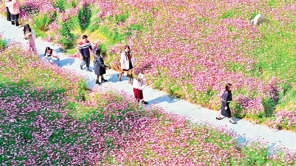 “我是在抖音上刷到這片花海的,秋天是落葉的季節(jié),還能看到這么漂亮的花海,我很驚喜,到這以后可以帶孩子拍照、玩耍,周圍的農(nóng)家樂飯菜做得也非常不錯(cuò),感覺到非常放松!”從縣城過來打卡的游客黃琴說。