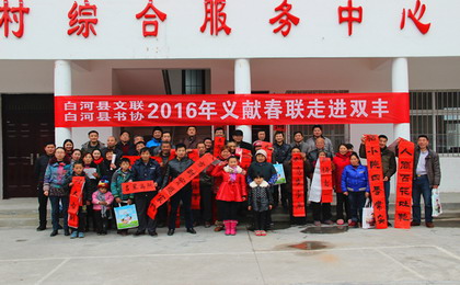 --白河縣人大、縣文聯(lián)走進(jìn)扶貧村義寫春聯(lián)送祝福安康新聞網(wǎng)訊(通訊員 鐘曉芳)猴年春節(jié)臨近,家家戶戶都在準(zhǔn)備年貨,春聯(lián)因紅紅火火象征著吉祥,象征著來年對幸!