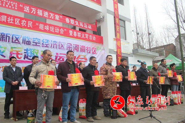 本網(wǎng)訊 (通訊員 王文濤)數(shù)聲爆竹入新年,萬紫千紅信為傳。1月11日,安康高新區(qū)臨空經(jīng)濟區(qū)余河洞社區(qū)為決戰(zhàn)脫貧攻堅,助力全民健身,助推新民風建設,特舉辦農(nóng)民“趣味運動會”暨春聯(lián)義寫活動。
