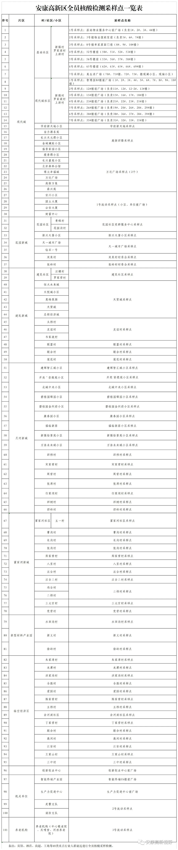 附件:安康高新區(qū)全員核酸檢測采樣點(diǎn)一覽表