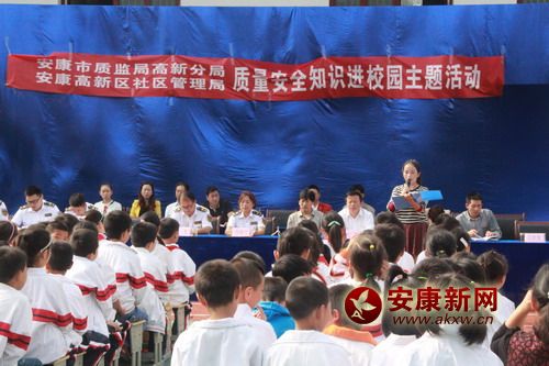 安康新網(wǎng)訊 (通訊員 周秋)9月30日,高新區(qū)質(zhì)量安全知識(shí)進(jìn)校園主題活動(dòng)在聯(lián)合小學(xué)舉行,該活動(dòng)由市質(zhì)監(jiān)局高新分局和高新區(qū)社區(qū)管理局舉辦。全校500多名師生和來(lái)自全區(qū)16所中小學(xué)及幼兒園的安全專干參加了活動(dòng)。在互動(dòng)中,同學(xué)們熱情高漲,舉手搶答問(wèn)題。fpa安康新聞網(wǎng)