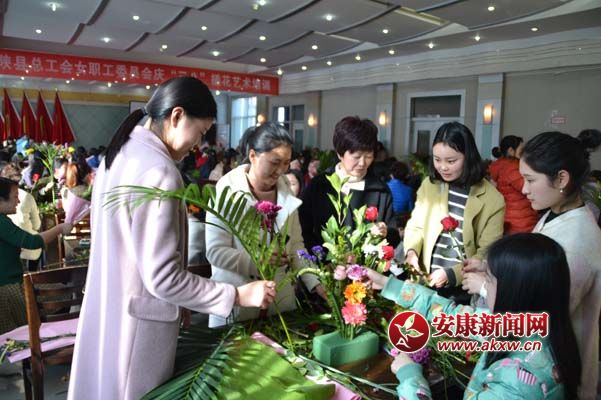 寧陜200名女職工學(xué)插花 慶“三八”婦