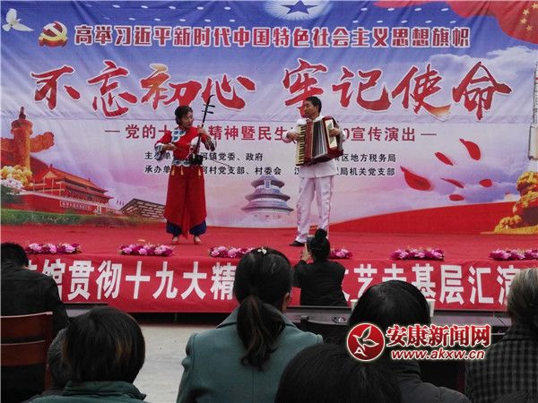 安康新聞網(wǎng)訊(通訊員 潘德安)為進一步學習貫徹宣傳黨的十九大精神,把思想和行動盡快統(tǒng)一到大會精神上來,以習近平新時代中國特色社會主義思想武裝頭腦,高標準、嚴要求、強責任、實舉措決勝脫貧攻堅戰(zhàn),11月16日,大河鎮(zhèn)文化站邀請安康漢韻知青藝術團為大河鎮(zhèn)伍河村開展“學習貫徹黨的十九大精神,決勝脫貧攻堅戰(zhàn)”主題文藝演出活動。