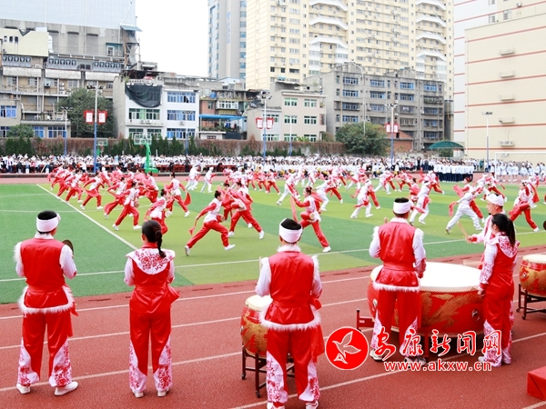 隨后,同學們進行了啦啦操、集體舞、腰鼓、武術(shù)表演。精彩紛呈、青春活力的文體表演結(jié)束后,運動項目比賽隨即展開,田徑場上加油聲此起彼伏,運動員們競相比拼,打破了多項校運會記錄,展現(xiàn)了更高、更快、更強的體育精神。
