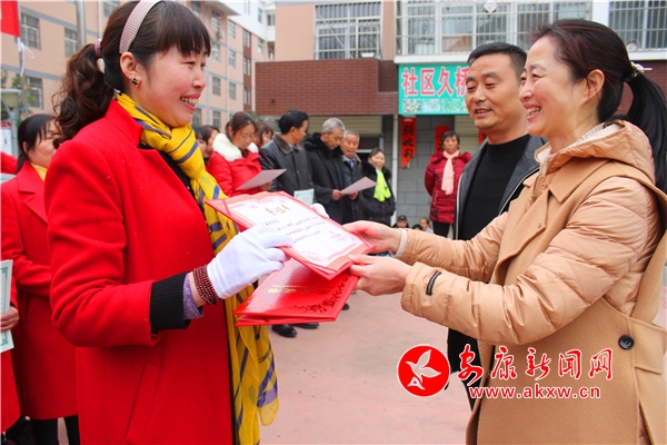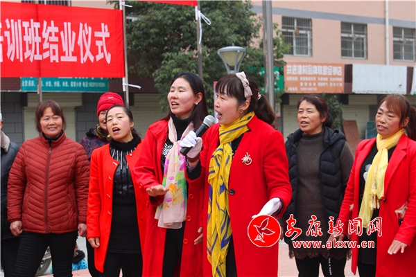 當(dāng)天的氣溫驟降,盡管天空中飄著零星雨絲,但仍擋不住學(xué)員們演唱“花鼓子”的熱情。在社區(qū)的百姓大舞臺(tái)上,鄧小娣、曹善蓮等學(xué)員爭(zhēng)先恐后上臺(tái)展示自己的學(xué)習(xí)成果,學(xué)員們每唱完一段花鼓子歌詞,田莊村鑼鼓隊(duì)的鑼鼓聲便鏗鏘有力響起來(lái),臺(tái)上花鼓子悠揚(yáng)動(dòng)聽(tīng),臺(tái)下鑼鼓聲抑揚(yáng)頓挫,雙方配合的十分默契;ü淖营(dú)唱表演結(jié)束后,大家一起手挽手、高興地走上舞臺(tái),開(kāi)始表演對(duì)唱、合唱,他們聲情并茂、字正腔圓的表演把現(xiàn)場(chǎng)的氣氛一次次推向高潮,讓前來(lái)觀看演出的群眾如癡如醉。隨后,早陽(yáng)鎮(zhèn)文化綜合服務(wù)站負(fù)責(zé)人為22名學(xué)員頒發(fā)了結(jié)業(yè)證書(shū),漢濱區(qū)非物質(zhì)文化遺產(chǎn)保護(hù)中心的干部為早陽(yáng)鎮(zhèn)3名傳承保護(hù)“非遺”工作先進(jìn)個(gè)人頒發(fā)了榮譽(yù)證書(shū)。