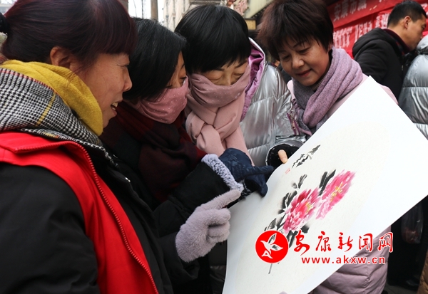 “很高興到鼓樓社區(qū)寫春聯(lián)、送祝福。”張思成點(diǎn)贊鼓樓社區(qū)充滿愛(ài)心、重視文化,提供很好的平臺(tái)讓書法家和居民一起交流學(xué)習(xí),營(yíng)造濃濃的春節(jié)民俗氛圍。現(xiàn)場(chǎng)不僅有著名的書法家,著名的畫家也為活動(dòng)增添色彩,“寒香臘梅”圖、“花開富貴”圖、“事事如意”圖、“節(jié)節(jié)高升”圖等顏色艷麗、生動(dòng)活潑,美好的寓意是送給居民最溫暖的祝福。