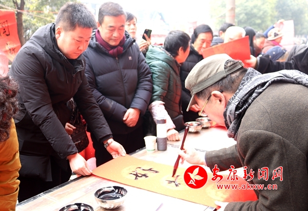 活動(dòng)現(xiàn)場(chǎng),八位著名書法家手持毛筆,嫻熟轉(zhuǎn)動(dòng)手腕, 安康日?qǐng)?bào)社張思成社長(zhǎng)剛把紅紙鋪開就被居民里三層外三層圍了起來(lái),頃刻間,一副洋溢節(jié)日喜慶的“春臨大地百花艷 福至靈芝萬(wàn)象新”春聯(lián)就寫好了。捧著稱心滿意的春聯(lián),劉先生連聲道謝。