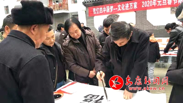 本網(wǎng)訊 (通訊員 惠星 郭仲艷)1月7日,“我們的中國夢”——文化進(jìn)萬家陜西文聯(lián)文藝小分隊省美協(xié)志愿服務(wù)活動走進(jìn)漢濱區(qū)雙龍鎮(zhèn),為這里的群眾送上春聯(lián)、書畫作品。