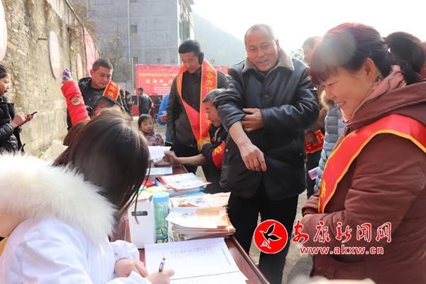 活動還未正式開始,義寫春聯(lián)攤位上就已圍滿了人群,來自漢濱區(qū)文化館的老師們揮毫潑墨,為高山村的鄉(xiāng)親們傳遞新年的祝福,現(xiàn)場的群眾接過一幅幅墨跡未干的春聯(lián),滿臉都是藏不住的喜悅,“我家都幾年沒貼對聯(lián)了,今年這手寫的春聯(lián)送上門,我也來要一副貼哈子。”現(xiàn)場的群眾紛紛表示,這樣的春聯(lián)顯的更有年味。在送衛(wèi)生的攤位前也排起了長隊,來自早陽鎮(zhèn)共進衛(wèi)生院的醫(yī)生們?yōu)楝F(xiàn)場的群眾做起了簡單的體檢,量血壓,詢問生活習慣,結(jié)合大家的生活規(guī)律,科普一些健康小常識,并給予一定健康指導。鎮(zhèn)掃黑辦、計育辦、文化站等部門也結(jié)合自身業(yè)務(wù),向現(xiàn)場群眾提供相關(guān)咨詢服務(wù)。