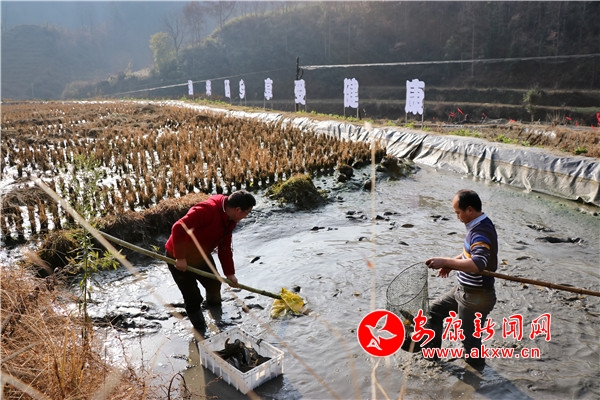 一大早,流芳村脫貧戶張遠(yuǎn)林一家就來到自家稻田撈魚。趕魚、撈魚、裝筐一氣呵成,他們要盡快把這些魚送到村里的收購(gòu)點(diǎn)。