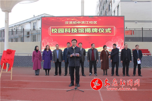 本網(wǎng)訊(通訊員 許世紅 吳玉兵)3月11日下午,漢濱初中濱江校區(qū)在校區(qū)運(yùn)動(dòng)場(chǎng)舉行了校園科技館揭牌儀式,區(qū)科協(xié)主席李森乾,漢濱區(qū)教體局黨委委員、區(qū)政府教育督導(dǎo)室副主任李文財(cái),漢濱區(qū)科協(xié)副主席李君,江北辦人大工委主任汪道琦,漢濱初中校長(zhǎng)徐平等領(lǐng)導(dǎo)蒞臨此次活動(dòng);顒(dòng)由濱江校區(qū)執(zhí)行校長(zhǎng)馬曉寧主持。