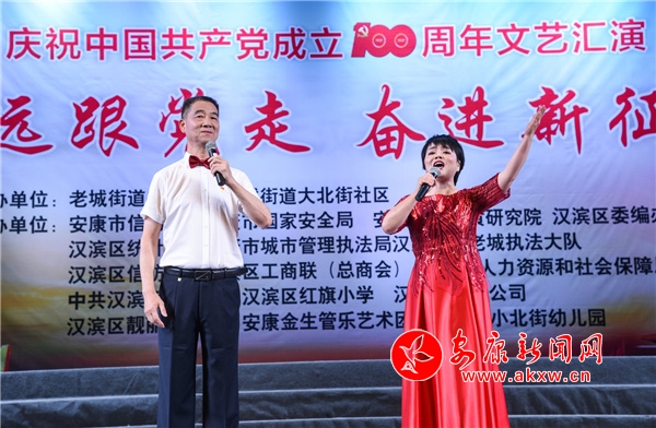本網(wǎng)訊(通訊員 林超)為慶祝中國共產(chǎn)黨成立100周年,進一步推動黨史學(xué)習(xí)教育工作走深走實,6月23日,老城街道辦大北街社區(qū)“永遠(yuǎn)跟黨走 奮進新征程”慶祝建黨100周年文藝匯演在漢調(diào)二黃劇院隆重舉行。