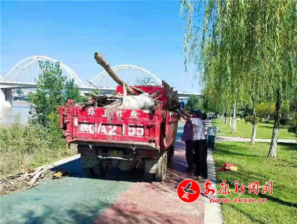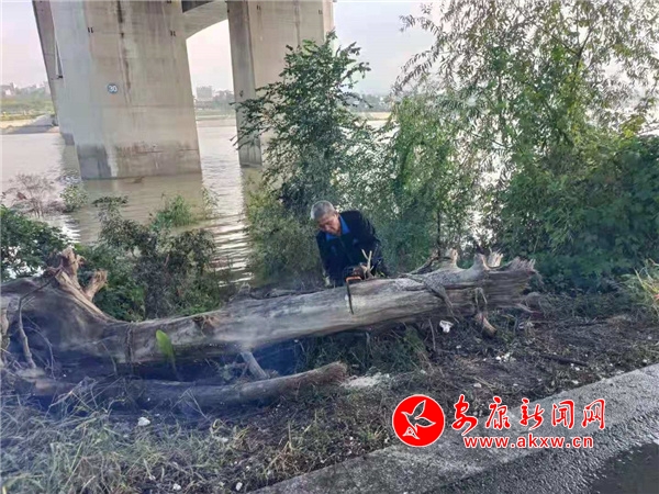 行動(dòng)中,護(hù)河員和專業(yè)施工隊(duì)員密切配合,對(duì)漢江南岸金川段、心石段、油坊段、白廟段河道護(hù)坡及岸邊的雜樹木進(jìn)行拉網(wǎng)式清理整治,工人們利用電鋸、刀等工具,將粗大雜樹木進(jìn)行切割規(guī)整,連同細(xì)小樹枝雜草一道搬至步道,然后用車統(tǒng)一運(yùn)走。據(jù)了解,截至9月23日,共清運(yùn)走雜樹木60余車,讓河岸與周邊的美景更好融為一體。