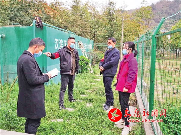 區(qū)生態(tài)環(huán)境分局干部檢查農村生活污水處理設施運行情況 葉偉 攝