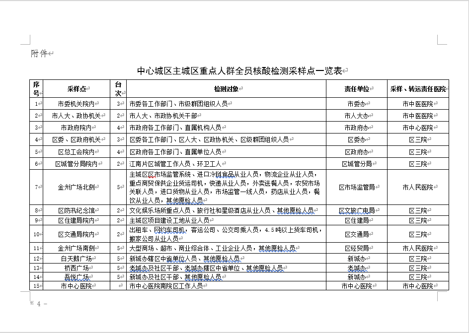 附件:中心城區(qū)主城區(qū)重點(diǎn)人群全員核酸檢測采樣點(diǎn)一覽表