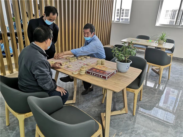 離退休黨員在社區(qū)老年活動中心下象棋
