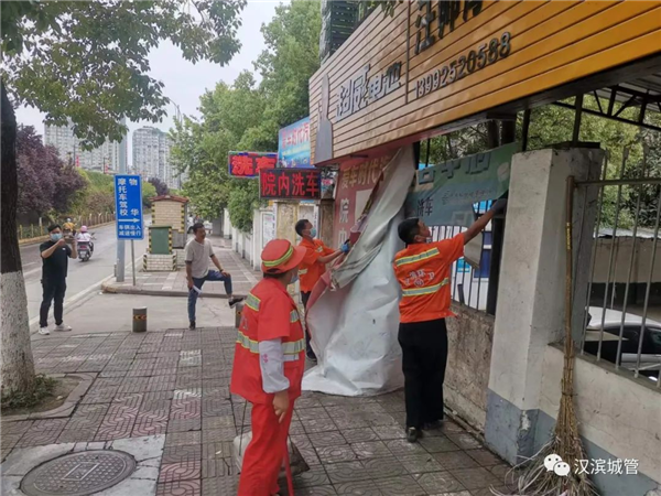各城管執(zhí)法大隊結合轄區(qū)特點,圍繞提升街面視覺形象和維護一江兩岸景觀形象重點保障任務,結合全天候不間斷巡查和重點值守措施,規(guī)范門店、商鋪和攤販經營行為,整飭便民市場周邊秩序,確保人行道環(huán)境整潔、秩序井然;實施破損和違規(guī)戶外廣告集中治理,先后拆除黃溝路、濱江路等處各類發(fā)光字、噴繪、鋼架等戶外廣告59塊,拆除人行道護欄、商鋪門頭、街巷上空、工地圍擋等處所的條幅、噴繪等軟體廣告200余條,切實提升中心城市視覺觀感。
