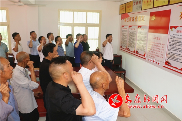 “我志愿加入中國共產(chǎn)黨,擁護黨的綱領(lǐng),遵守黨的章程……” 面對鮮紅的黨旗,全體黨員再一次舉起右拳,重溫了一遍入黨誓詞,把“不忘初心、牢記使命”錚錚誓言銘記于心。活動中,區(qū)行政審批服務(wù)局派駐興勝村第一書記汪紀文組織大家學(xué)習(xí)了黨的十九屆六中全會精神,村黨支部書記艾禮彥就學(xué)習(xí)貫徹省十四次黨代會精神講了一堂專題黨課,對李開軍等5名優(yōu)秀共產(chǎn)黨員進行了表彰。會議要求全體黨員要自覺加強學(xué)習(xí),以優(yōu)秀黨員為榜樣,發(fā)揮黨員的先鋒模范作用,事事走在前、干在先,勇于擔(dān)當(dāng)作為。加強支部聯(lián)建,互幫互學(xué)互補,扎實做好聯(lián)村幫扶工作,為鄉(xiāng)村振興貢獻力量。
