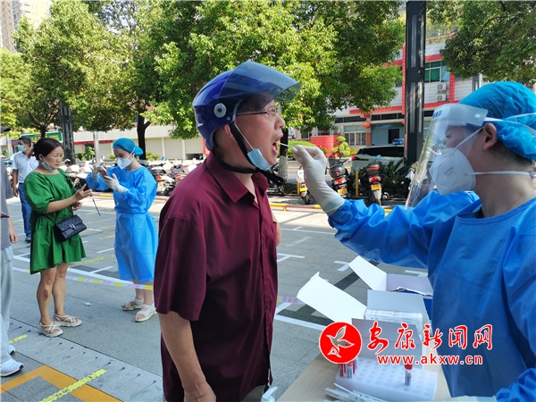 按照全市新冠肺炎疫情防控指揮部的周密部署,8月18日下午,漢濱中心城區(qū)啟動第二次全員核酸檢測工作 。圖為安火路社區(qū)居民在執(zhí)勤民警、醫(yī)務(wù)人員、社區(qū)工作者和志愿者的密切配合下,有序開展核酸檢測。(陳榮斌 攝) 4ga安康新聞網(wǎng)