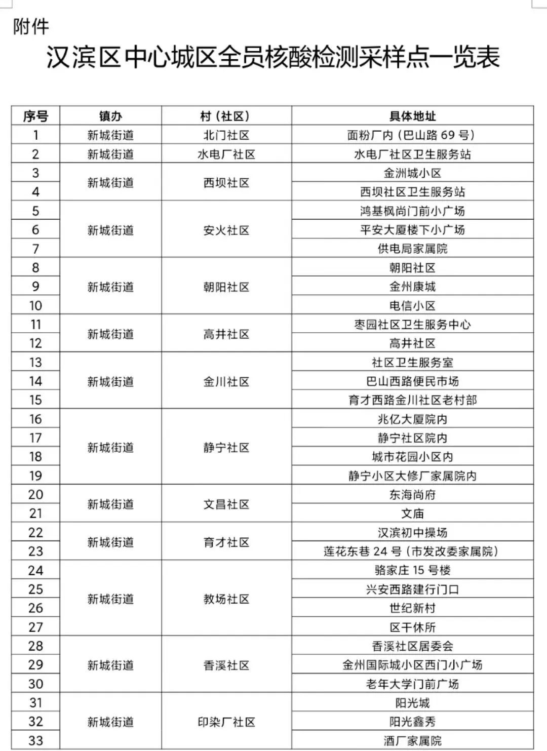 漢濱區(qū)老城街道、建民街道、新城街道、江北街道及關(guān)廟鎮(zhèn)、吉河鎮(zhèn)中心城區(qū)范圍(具體見附件所列村、社區(qū))常住和流動人員一律參加核酸檢測。
