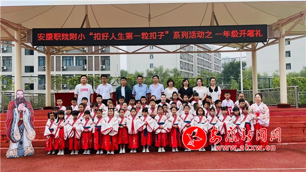 9月16日,安康職業(yè)技術(shù)學(xué)院附屬小學(xué)舉行“喜迎二十大 強(qiáng)國復(fù)興有我”開筆啟智活動(dòng)。一年級(jí)新生身著漢服,通過正衣冠、拜孔子、誦經(jīng)典、點(diǎn)朱啟智、擊鼓鳴志、開筆寫“人”、感恩鞠躬等環(huán)節(jié),領(lǐng)略濃郁的校園文化氛圍和優(yōu)秀傳統(tǒng)文化的魅力,莊重的儀式在學(xué)生內(nèi)心種下愛學(xué)習(xí)、敬師長的種子,助力孩子走好學(xué)習(xí)第一步。(圖文/甘立)