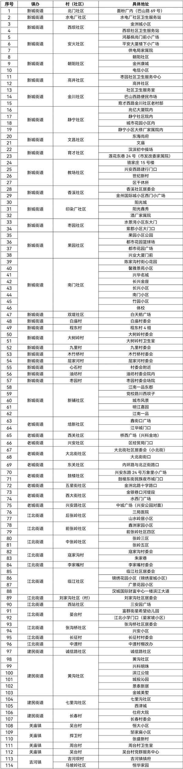共設(shè)置114個采樣點(見附件),由各街道、鎮(zhèn)政府統(tǒng)一安排采樣點設(shè)置、人員組織、秩序維護。檢測對象按照街道和鎮(zhèn)政府要求,分時段有序到指定地點進行采樣,避免人員聚集。