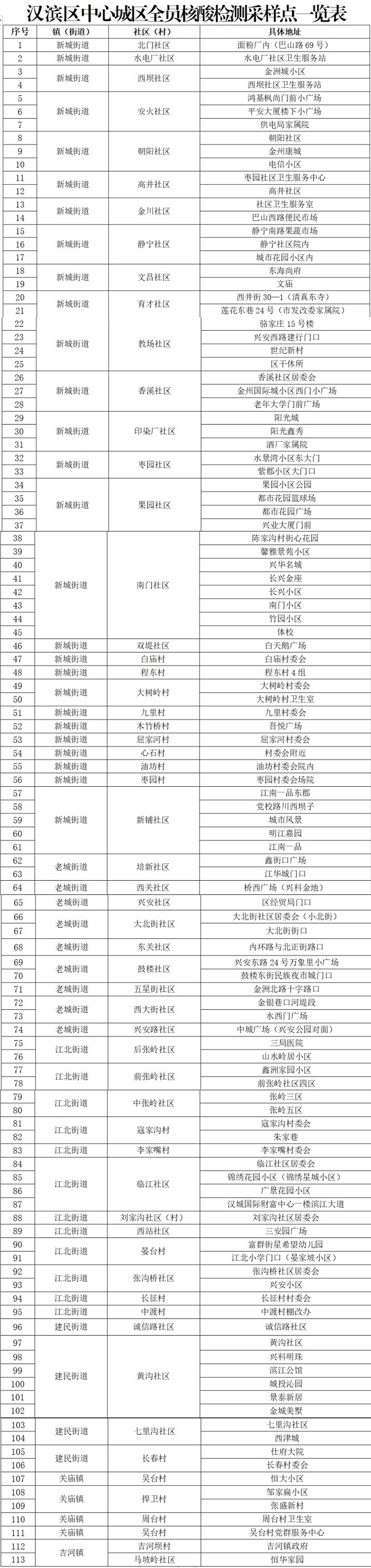 附件:漢濱區(qū)中心城區(qū)全員核酸檢測(cè)采樣點(diǎn)一覽表
