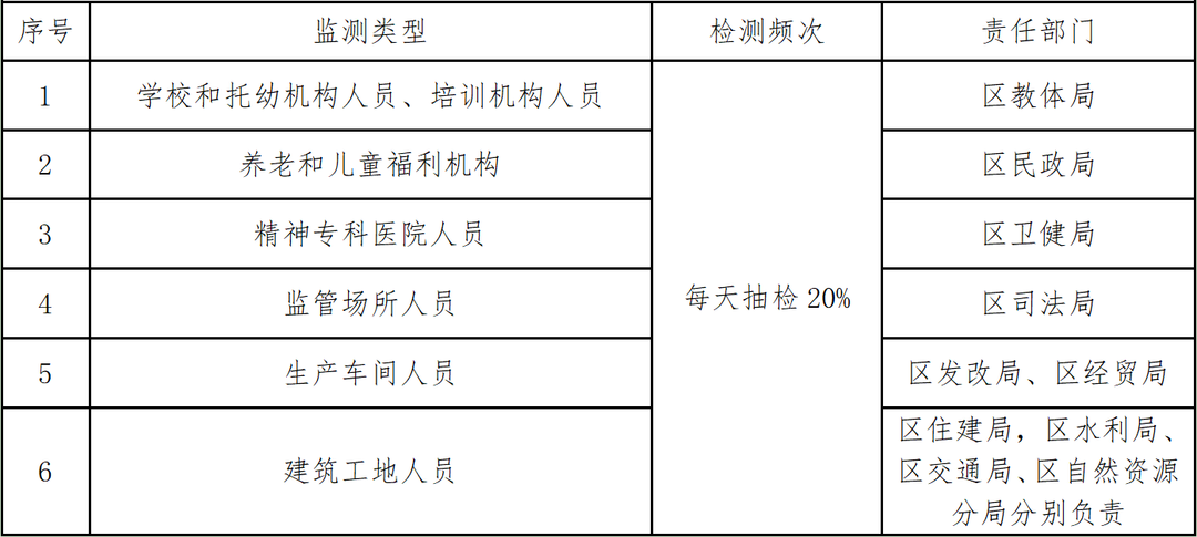 為認真落實“外防輸入、內(nèi)防反彈”總策略和省市疫情防控要求,方便群眾開展新冠病毒核酸檢測,擴大檢測范圍,充分發(fā)揮核酸檢測哨點監(jiān)測作用,及時發(fā)現(xiàn)潛在疫情風險,結合工作實際,特制定中心城區(qū)常態(tài)化核酸檢測方案。