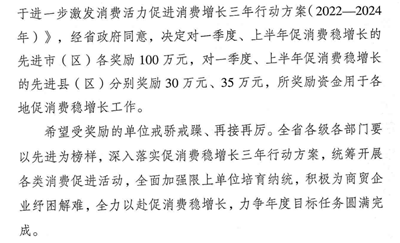 12月19日,陜西省商務(wù)廳通報(bào)了2022年促消費(fèi)穩(wěn)增長先進(jìn)市(區(qū))和先進(jìn)(區(qū)),漢濱區(qū)獲評(píng)“上半年促消費(fèi)穩(wěn)增長先進(jìn)區(qū)”,獎(jiǎng)勵(lì)35萬元。XLD安康新聞網(wǎng)