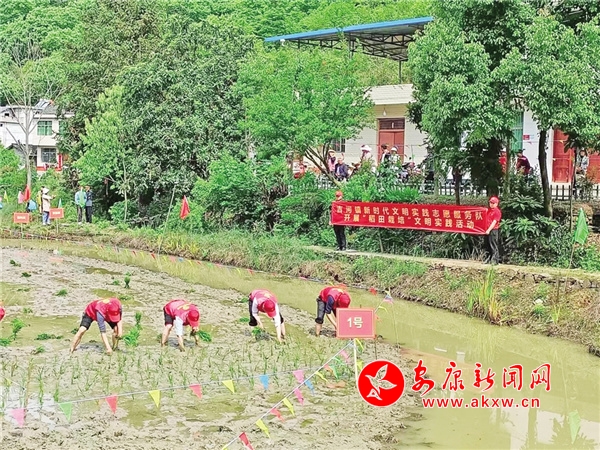 以藍(lán)天為幕布,以秧田為擂臺(tái),一大早。來(lái)自安康市市場(chǎng)監(jiān)督管理局1號(hào)隊(duì)2號(hào)隊(duì)、吉河壩社區(qū)黨支部、三河村黨支部、吉河九年制學(xué)校隊(duì)及安康環(huán)博職校助農(nóng)團(tuán)共6支參賽代表隊(duì)的選手信心滿滿,蓄勢(shì)待發(fā)。