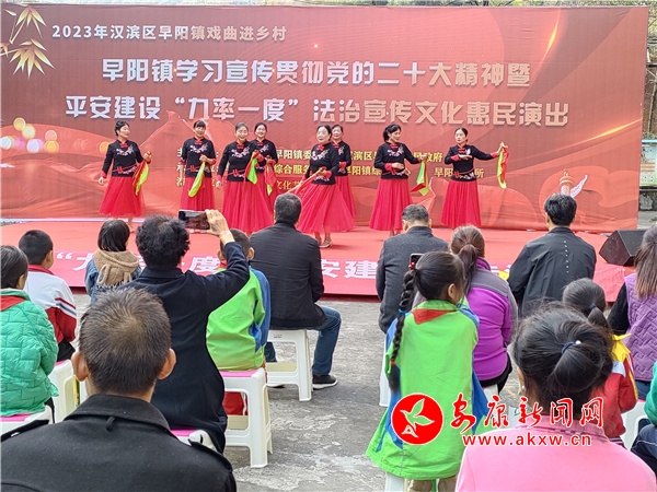 本網(wǎng)訊(通訊員 汪丁 胡德良)為豐富山區(qū)群眾的精神文化生活,進(jìn)一步提升“九率一度”知曉率,10月31日,漢濱區(qū)早陽鎮(zhèn)學(xué)習(xí)宣傳貫徹黨的二十大精神暨平安建設(shè)“九率一度”法治宣傳文化惠民活動走進(jìn)丁河村,為當(dāng)?shù)厝罕娝腿チ司实奈乃嚬?jié)目和平安建設(shè)知識。