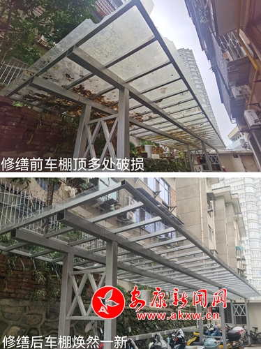 心系群眾,修繕車棚暖民心。作為新城辦安火路社區(qū)的共駐共建單位,區(qū)人社局事業(yè)單位黨支部持續(xù)深化“五同”工作機制創(chuàng)建工作,主動靠前認領(lǐng)“微心愿”,解決群眾的急難愁盼問題。近日,為了有效解決無物業(yè)鵬誠小區(qū)內(nèi)車棚頂多處損壞,出現(xiàn)漏雨等問題,支部在“安心到”APP平臺上主動認領(lǐng)“微心愿”,立即行動,組織施工人員對破損的車棚頂部全部進行更新修繕,消除安全隱患,有效維護了居民停車安全。目前,車棚頂修繕工程已經(jīng)順利完工。